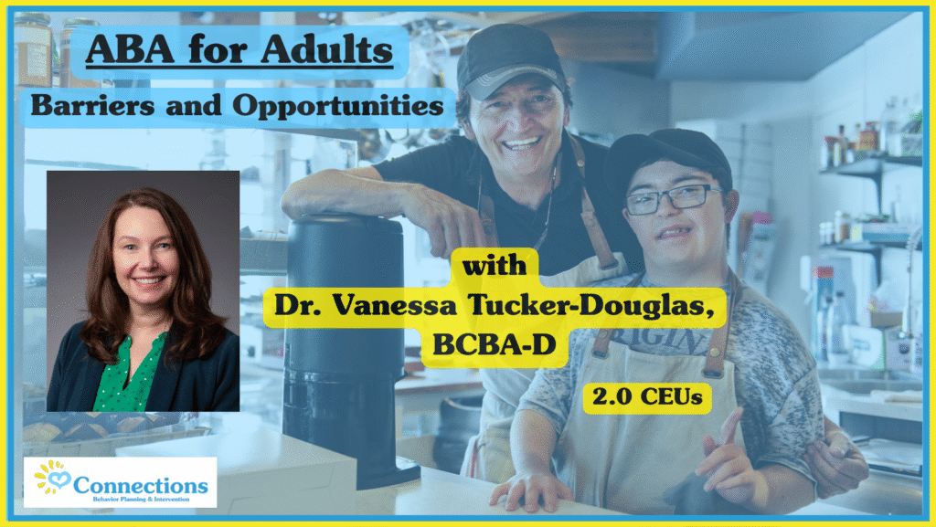 - Connections Behavior Planning and Intervention welcomes Dr. Vanessa Tucker-Douglas, Ph.D., BCBA-D, for an online webinar on working with adults.